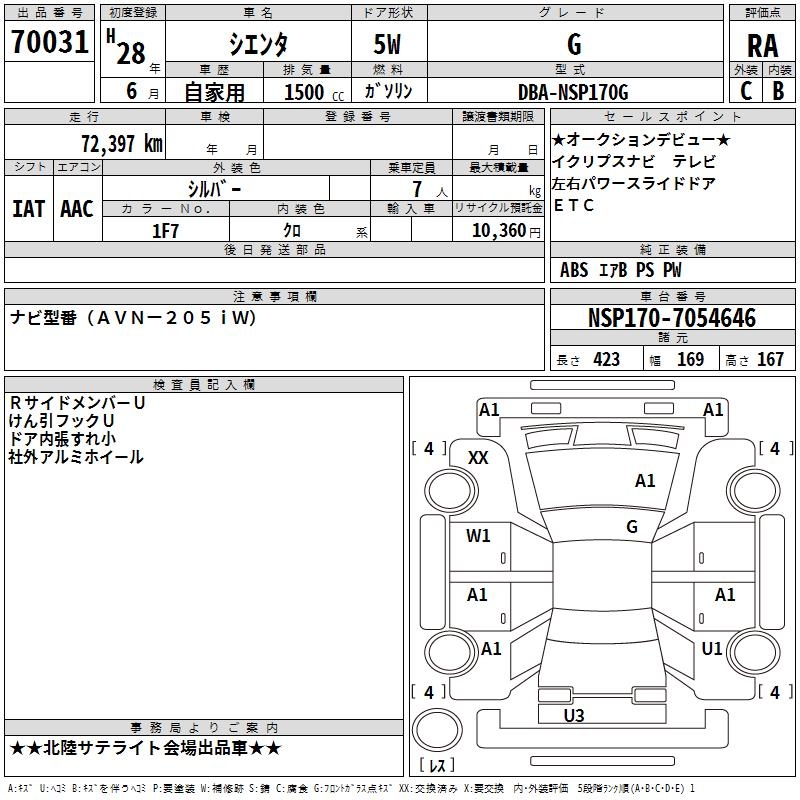 TOYOTA SIENTA G - лот 70031