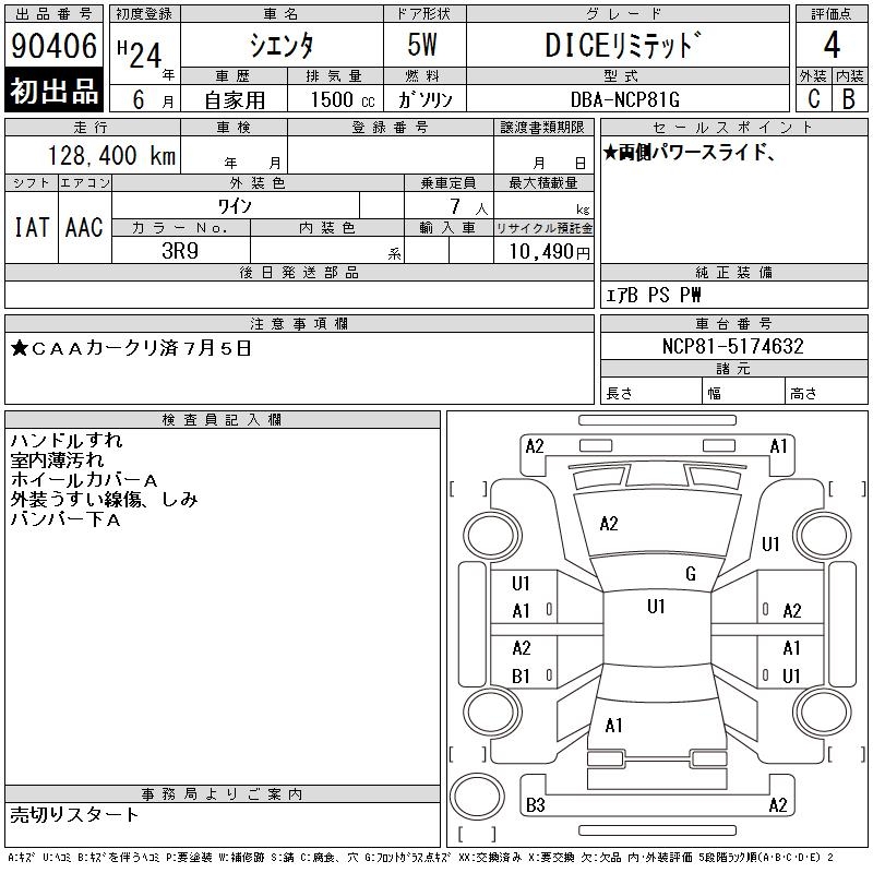 TOYOTA SIENTA DICE LIMITED - лот 90406
