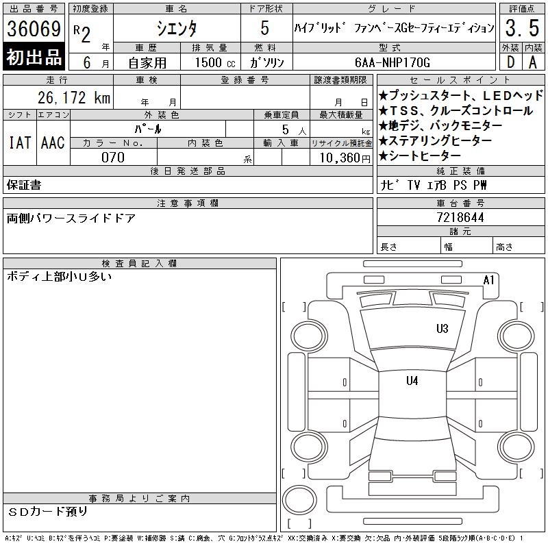 TOYOTA SIENTA HV FAN BASE G SAFETY -ED - лот 36069