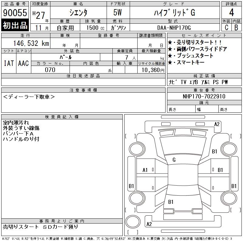 TOYOTA SIENTA HYBRID G - лот 90055