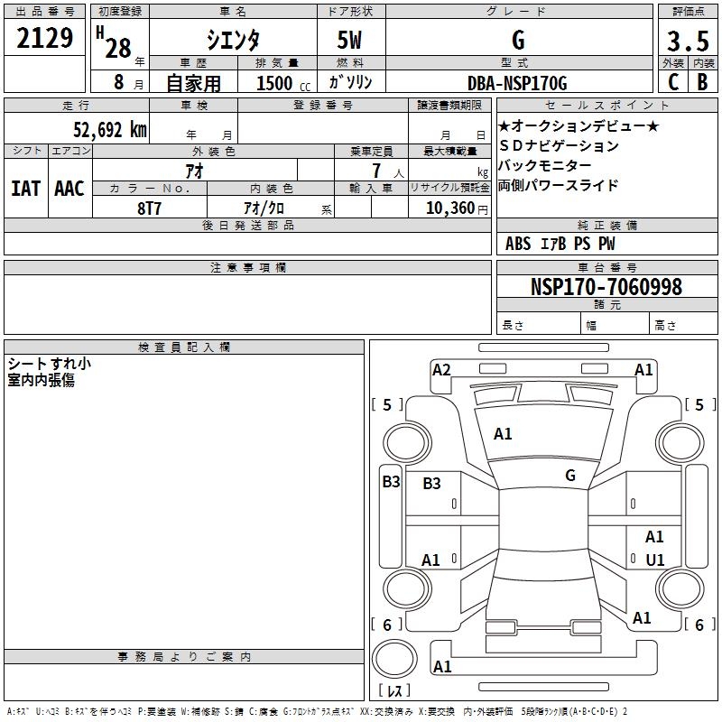 TOYOTA SIENTA G - лот 2129