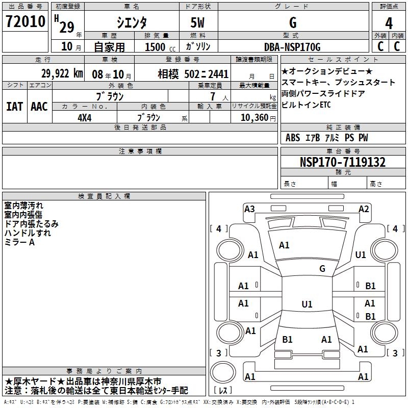 TOYOTA SIENTA G - лот 72010