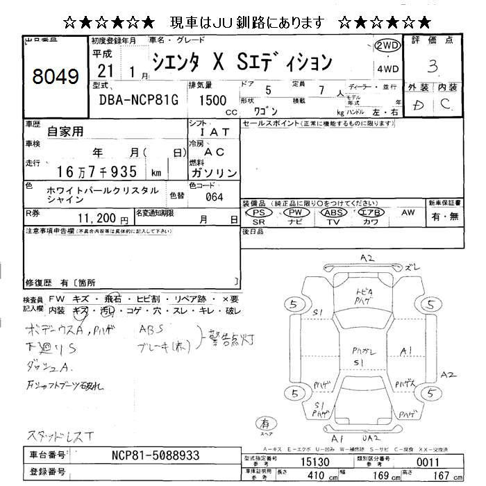 TOYOTA SIENTA X S EDITION - лот 8049