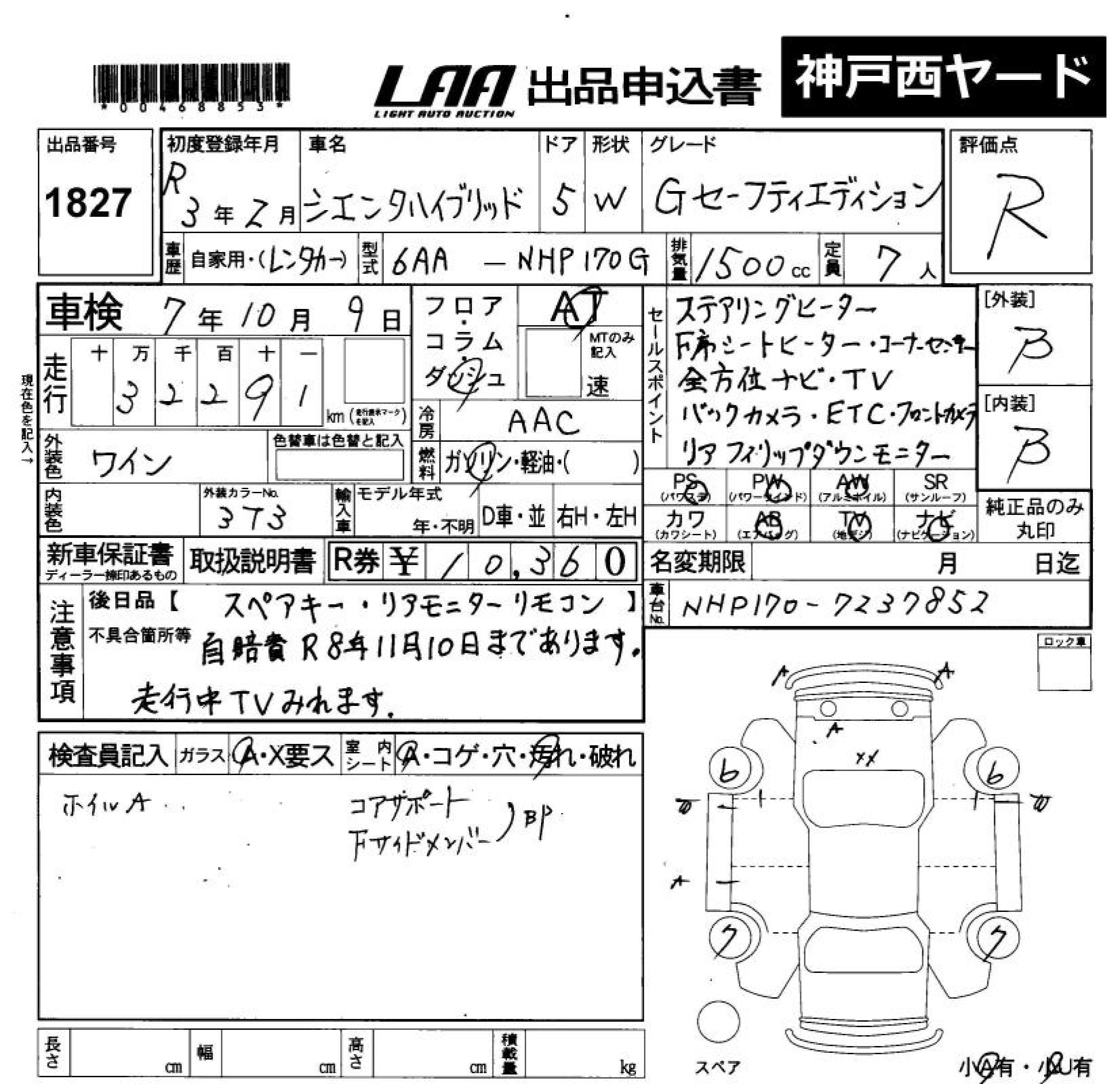 TOYOTA SIENTA HYBRID G SAFETY - - лот 1827