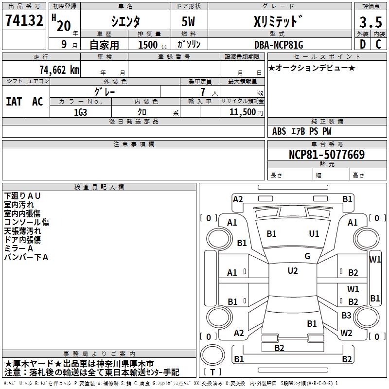 TOYOTA SIENTA X LIMITED - лот 74132