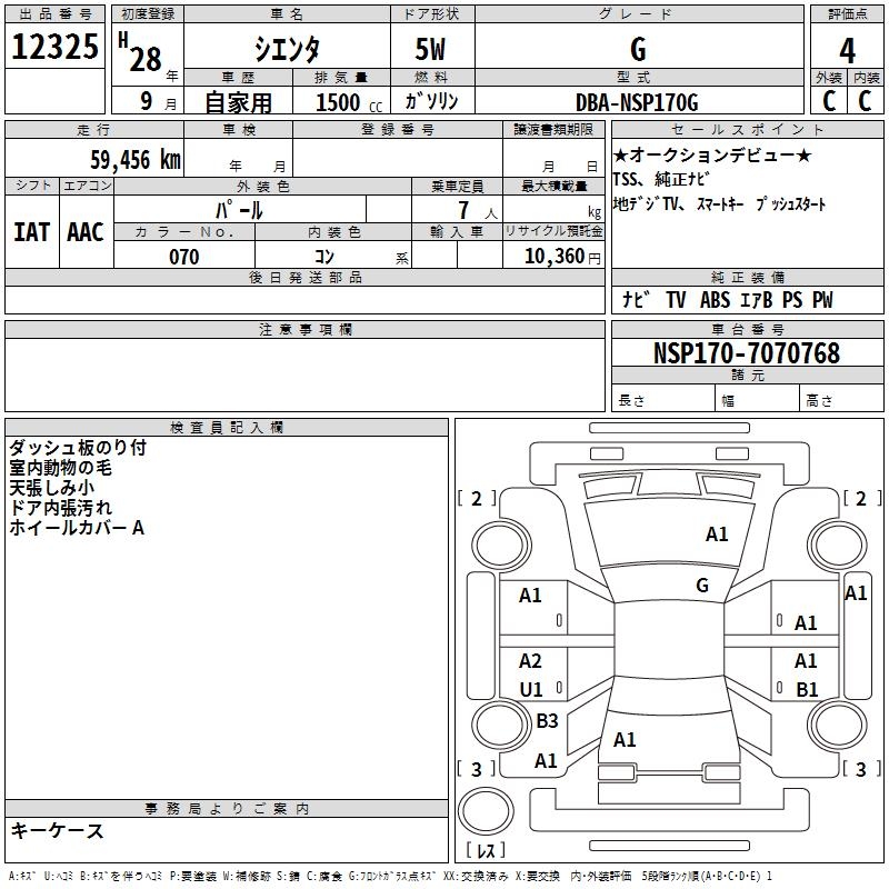 TOYOTA SIENTA G - лот 12325