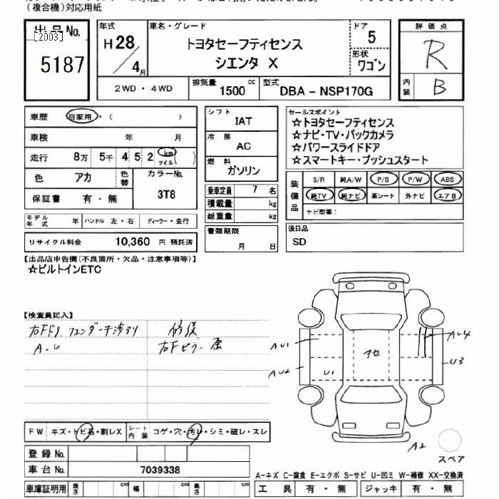 TOYOTA SIENTA X TOYOTA SAFETY SENS - лот 5187