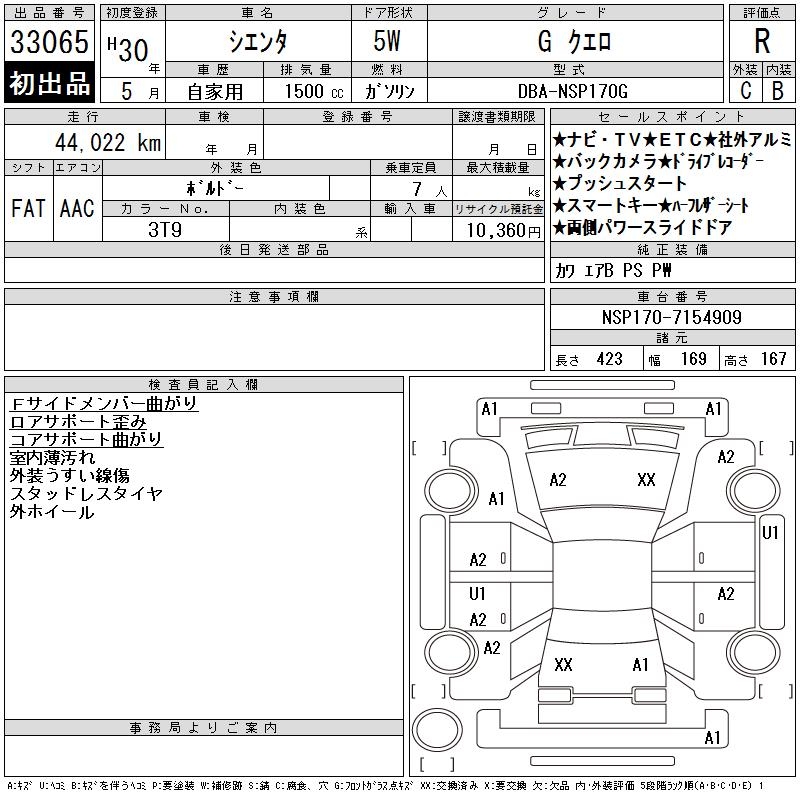 TOYOTA SIENTA GKERO - лот 33065