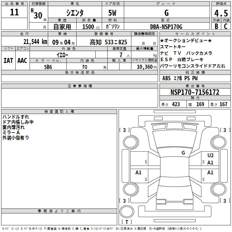 TOYOTA SIENTA G - лот 11