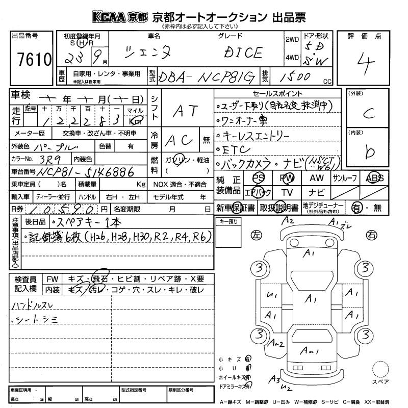 TOYOTA SIENTA DICE - лот 7610