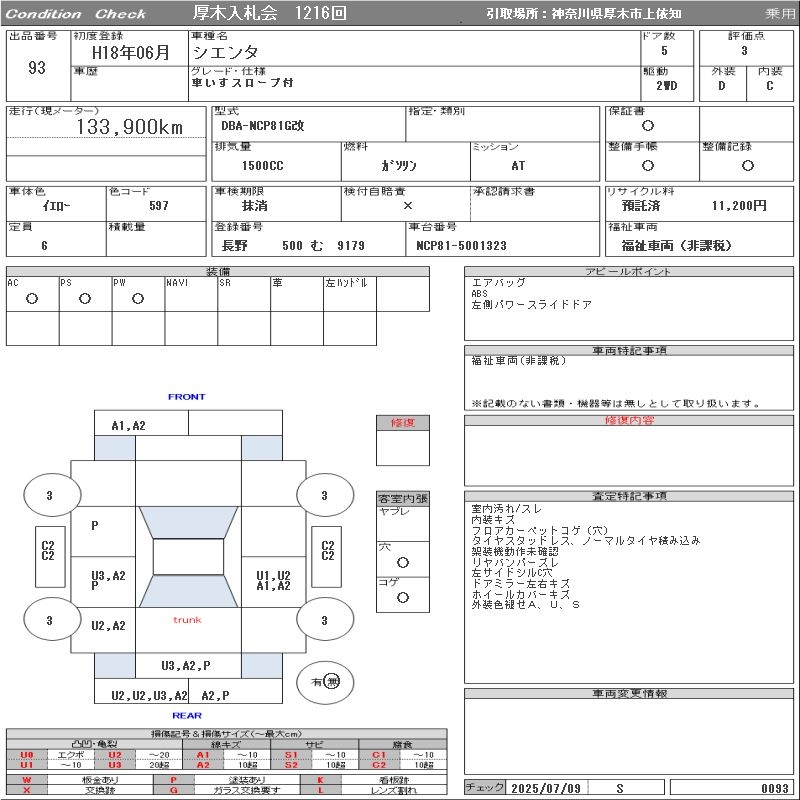 TOYOTA SIENTA WHEELCHAIR SLOPE ATTACHING - лот 93