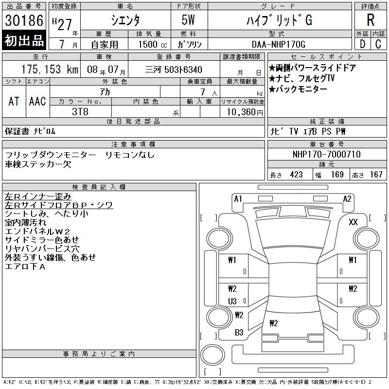 TOYOTA SIENTA HYBRID G - лот 30186
