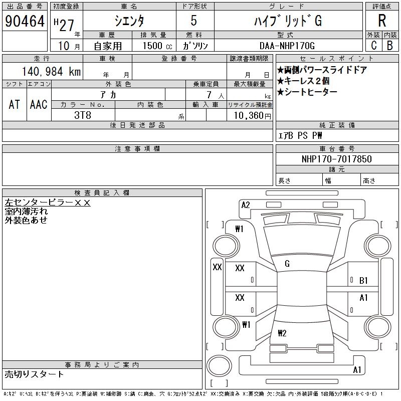 TOYOTA SIENTA HYBRID G - лот 90464