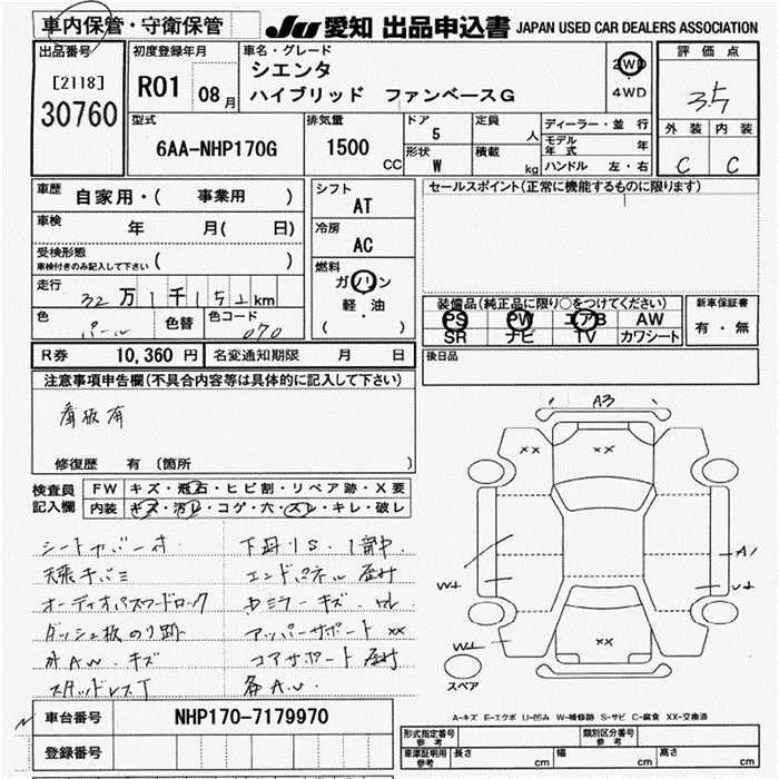 TOYOTA SIENTA HYBRID FAN BASE G - лот 30760
