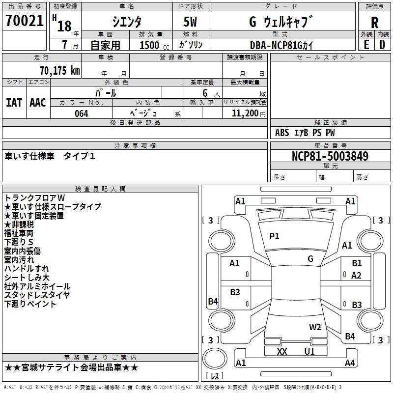TOYOTA SIENTA G WELL CAB - лот 70021
