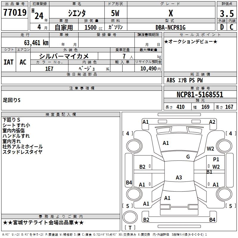 TOYOTA SIENTA X - лот 77019