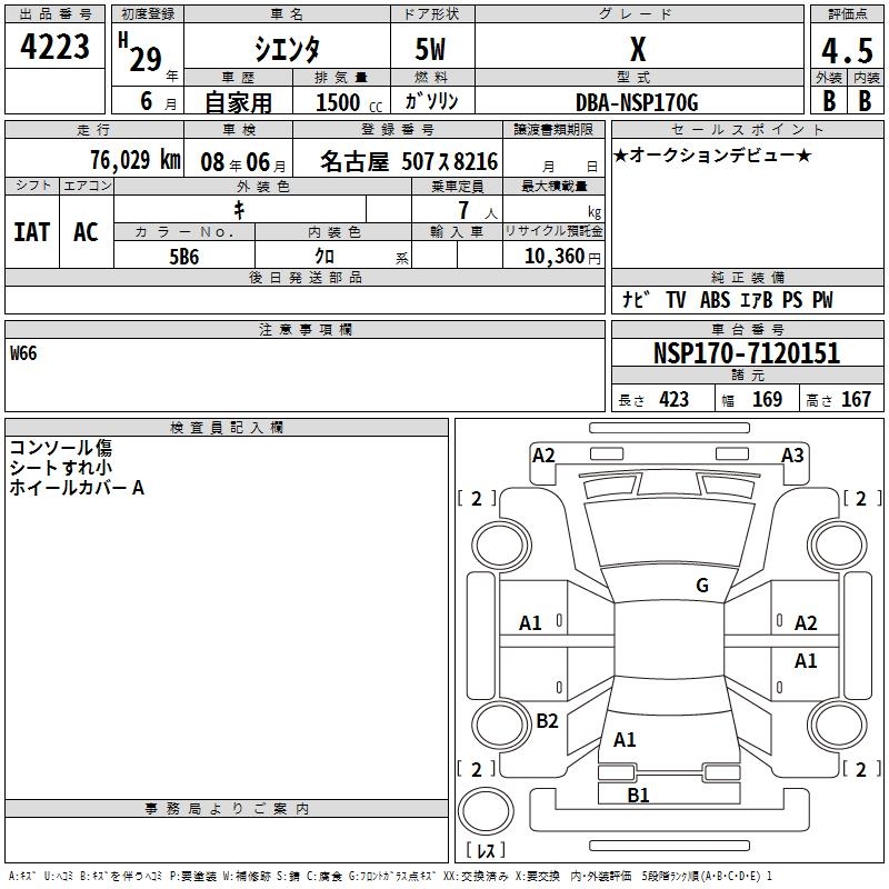 TOYOTA SIENTA X - лот 4223