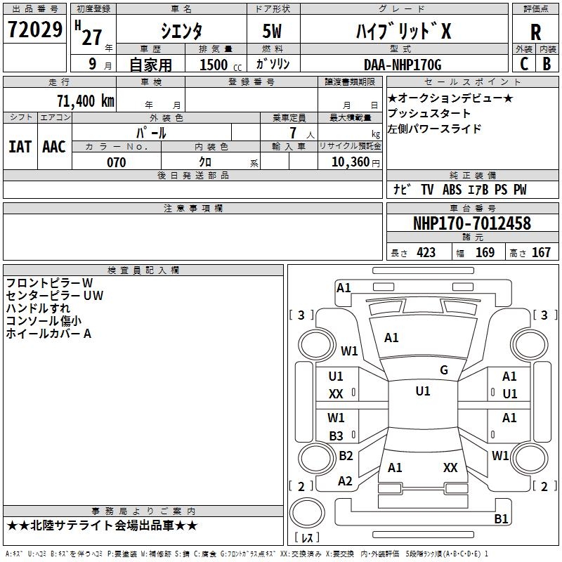 TOYOTA SIENTA HYBRID X - лот 72029