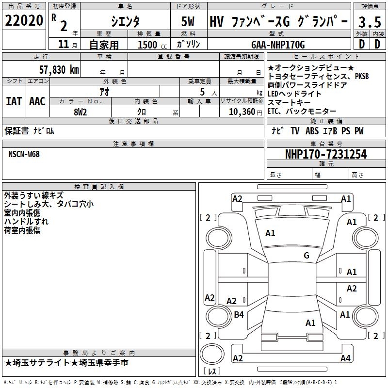 TOYOTA SIENTA HV FAN BASE G GRAN PA- - лот 22020