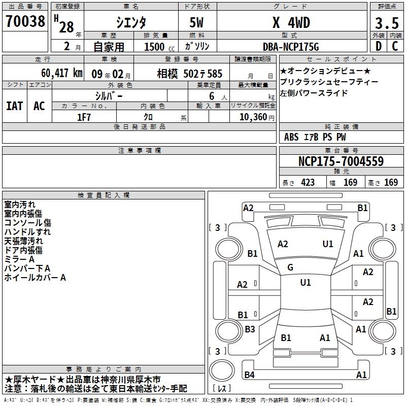TOYOTA SIENTA X 4WD - лот 70038