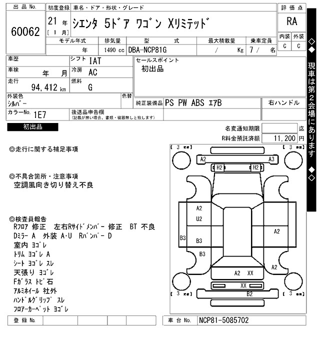 TOYOTA SIENTA X LIMITED - лот 60062