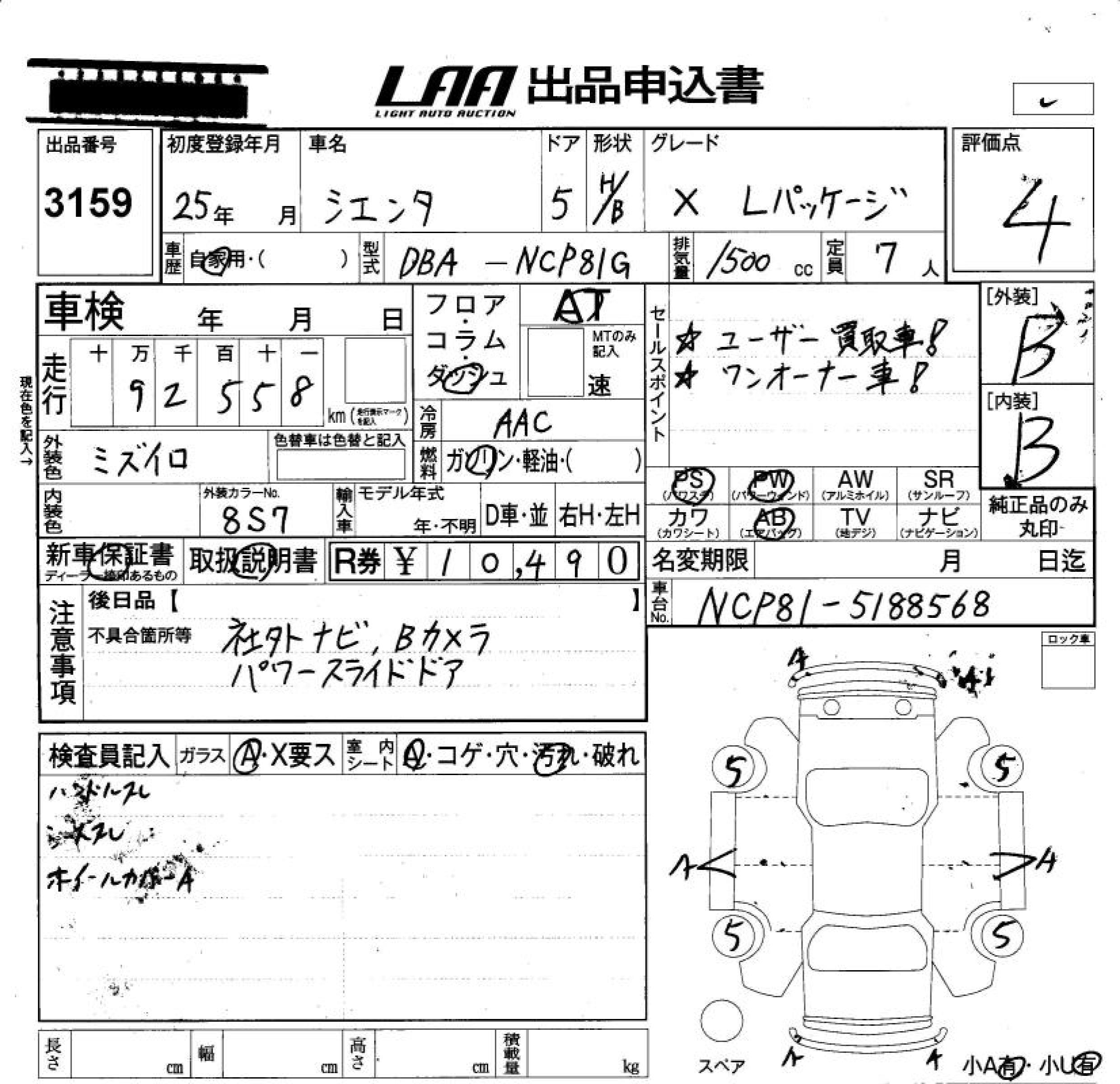 TOYOTA SIENTA X L PACKAGE - лот 3159