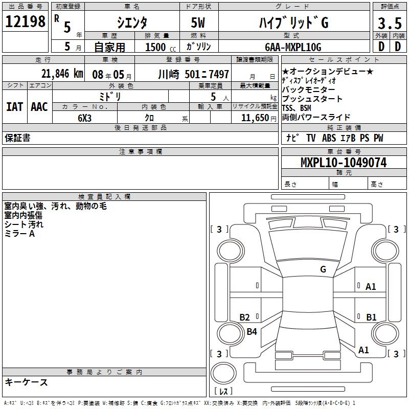 TOYOTA SIENTA HYBRID G - лот 12198