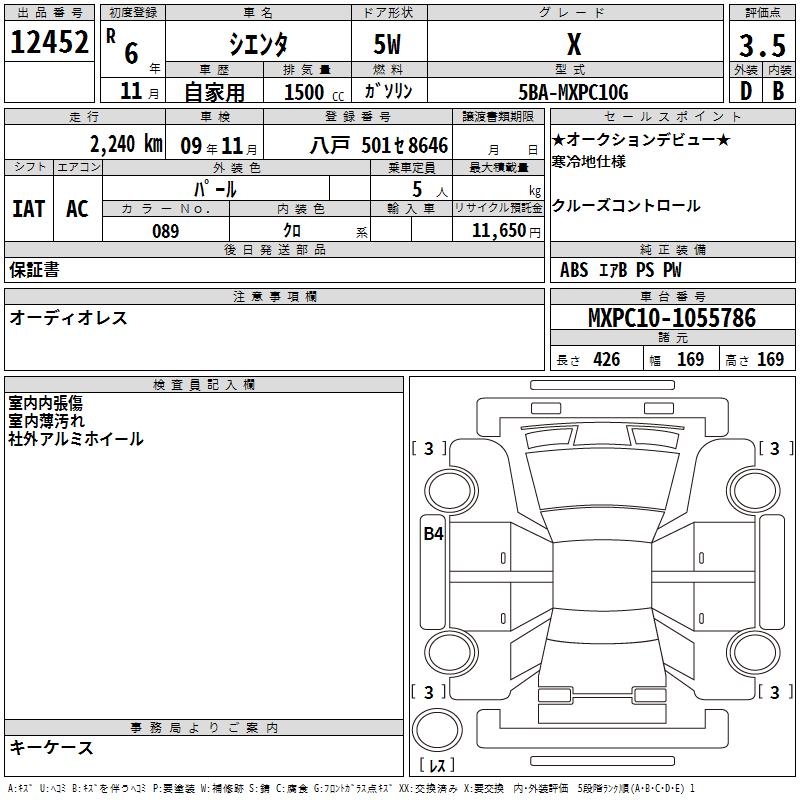 TOYOTA SIENTA X - лот 12452