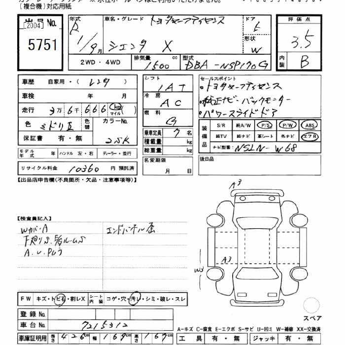 TOYOTA SIENTA X TSS - лот 5751