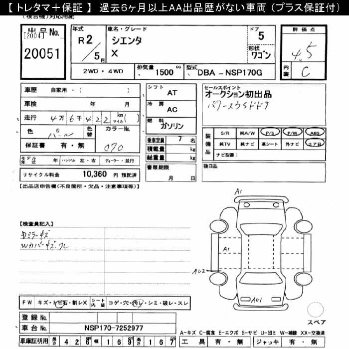 TOYOTA SIENTA X - лот 20051