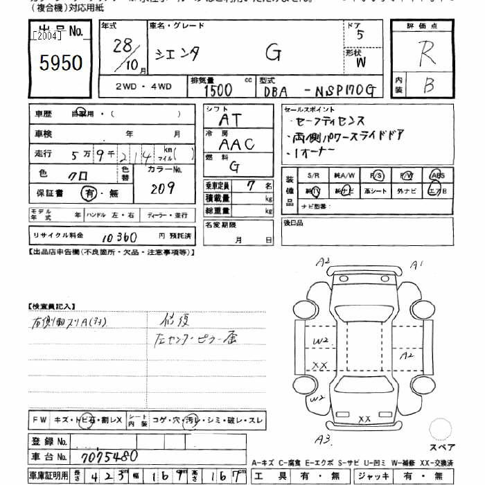 TOYOTA SIENTA G - лот 5950