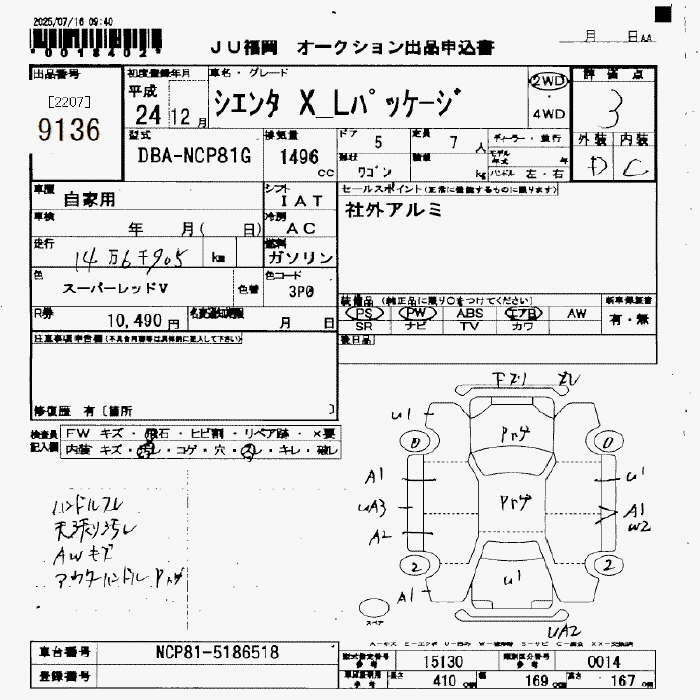 TOYOTA SIENTA X L PACKAGE - лот 9136