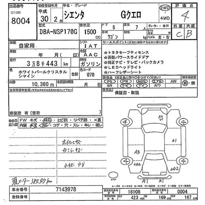TOYOTA SIENTA GKERO - лот 8004