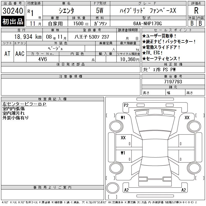 TOYOTA SIENTA HYBRID FAN BASE X - лот 30240