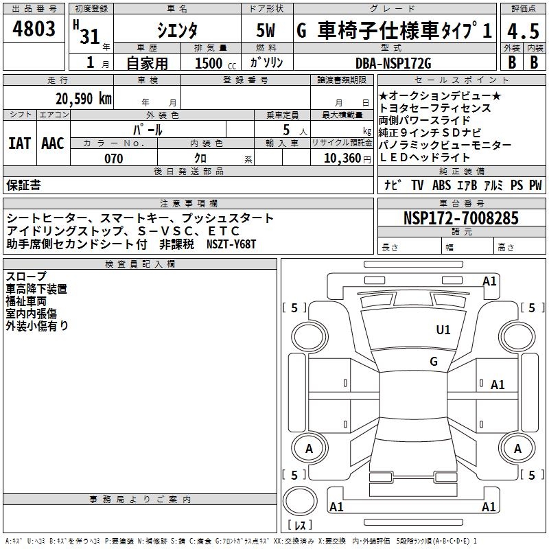 TOYOTA SIENTA GKRU MY S USE CAR TYPE 1 - лот 4803