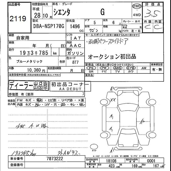 TOYOTA SIENTA G - лот 2119