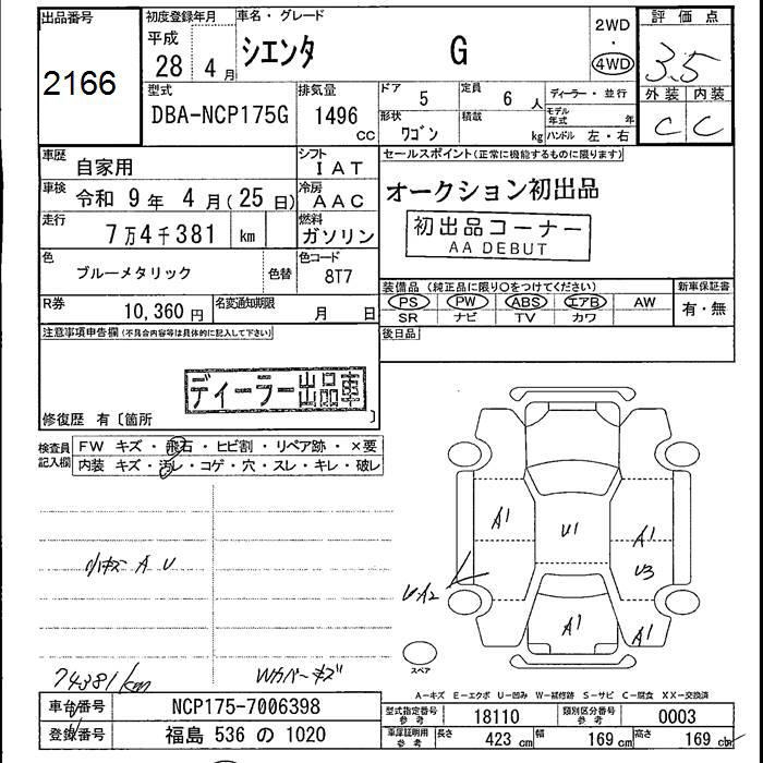 TOYOTA SIENTA 4WD G - лот 2166