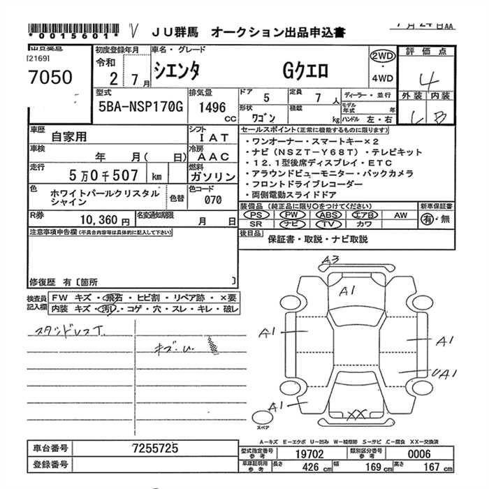 TOYOTA SIENTA GKERO - лот 7050
