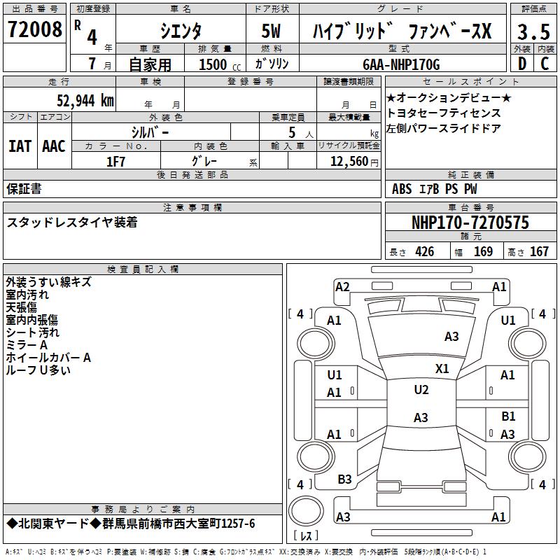 TOYOTA SIENTA HYBRID FAN BASE X - лот 72008