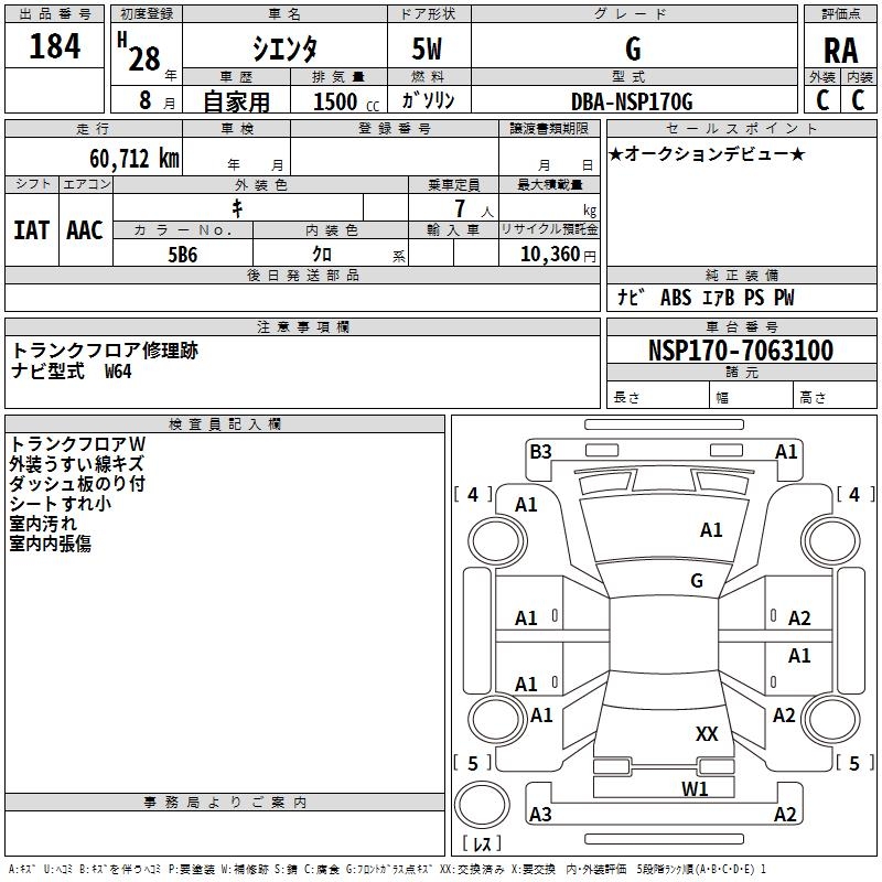 TOYOTA SIENTA G - лот 184