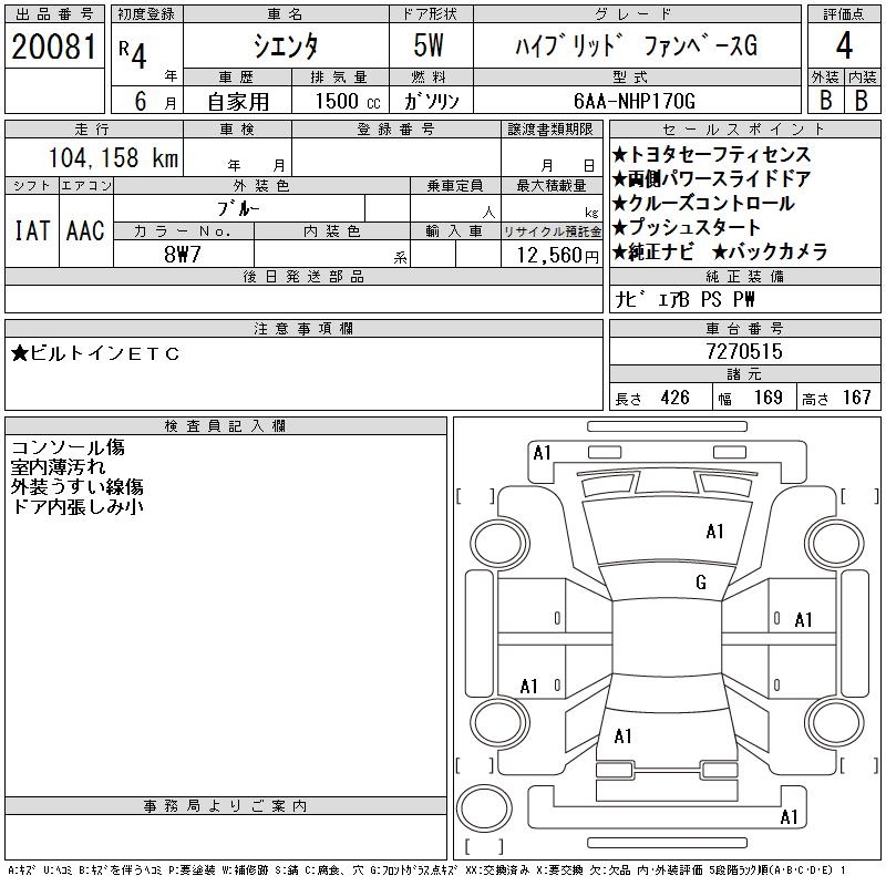 TOYOTA SIENTA HYBRID FAN BASE G - лот 20081