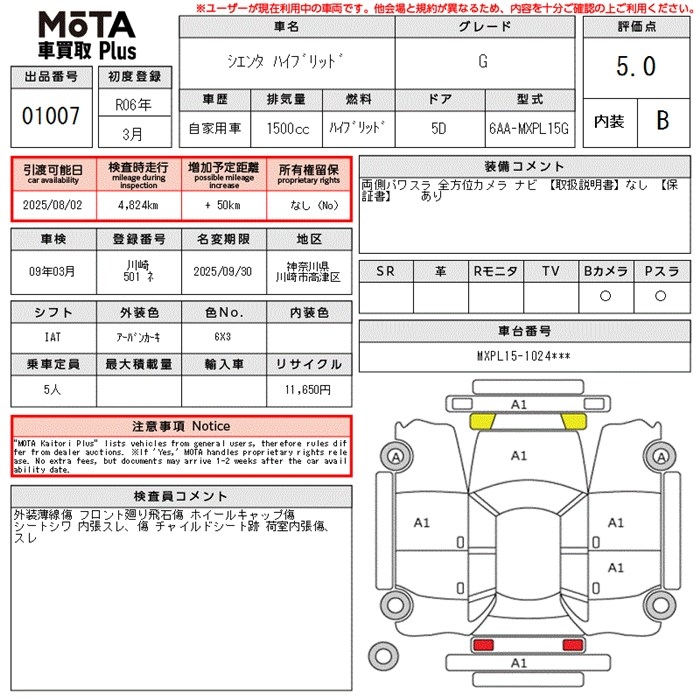 TOYOTA SIENTA G - лот 1007