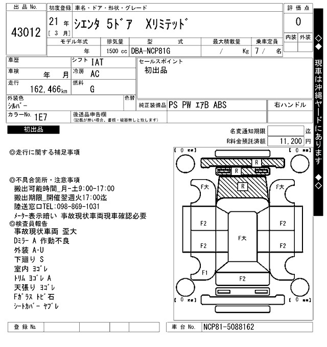 TOYOTA SIENTA X LIMITED - лот 43012
