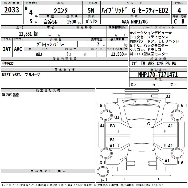 TOYOTA SIENTA HYBRID G SAFETY -ED2 - лот 2033
