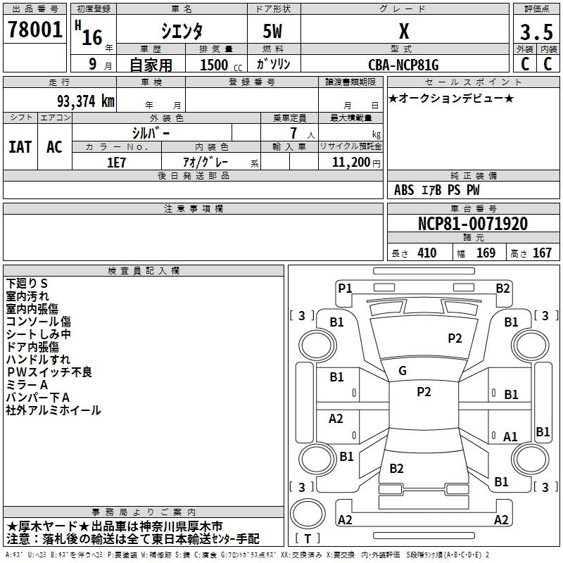 TOYOTA SIENTA X - лот 78001