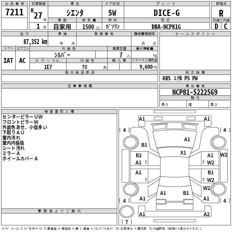 TOYOTA SIENTA DICE-G - лот 7211