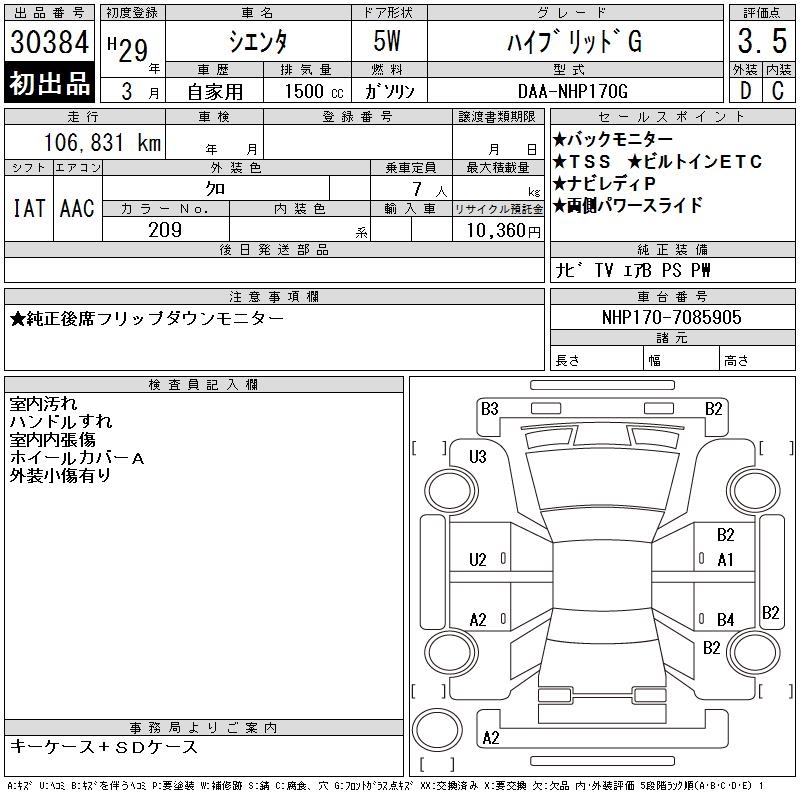 TOYOTA SIENTA HYBRID G - лот 30384