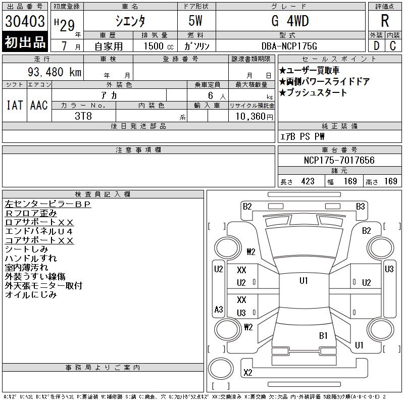 TOYOTA SIENTA G 4WD - лот 30403