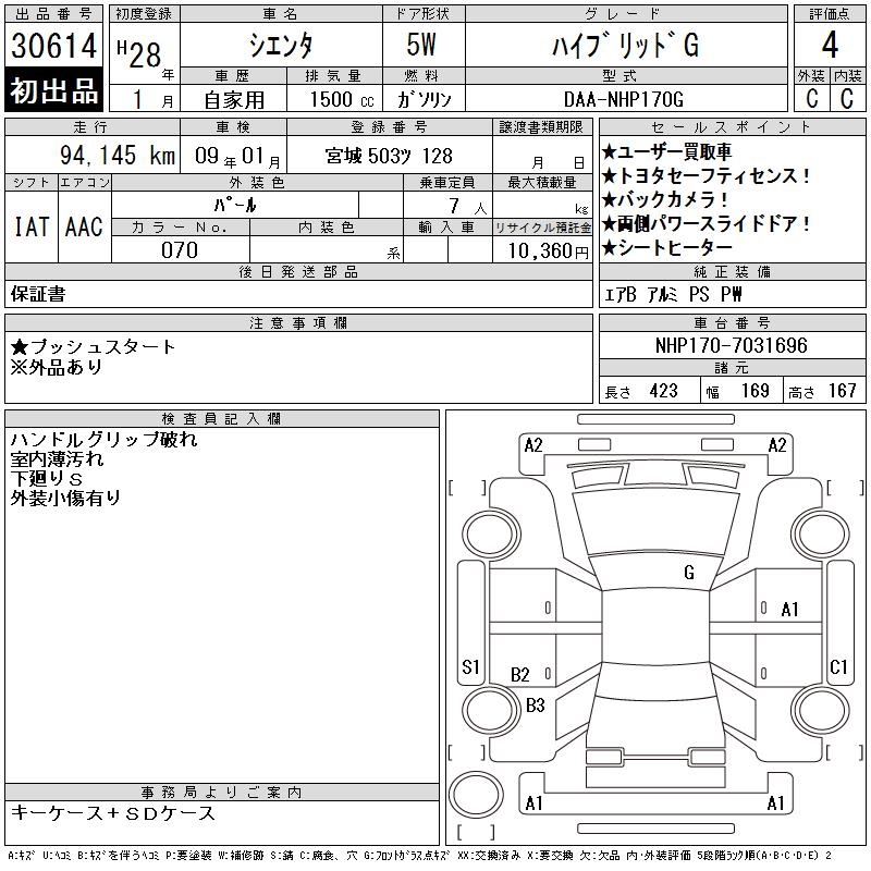 TOYOTA SIENTA HYBRID G - лот 30614