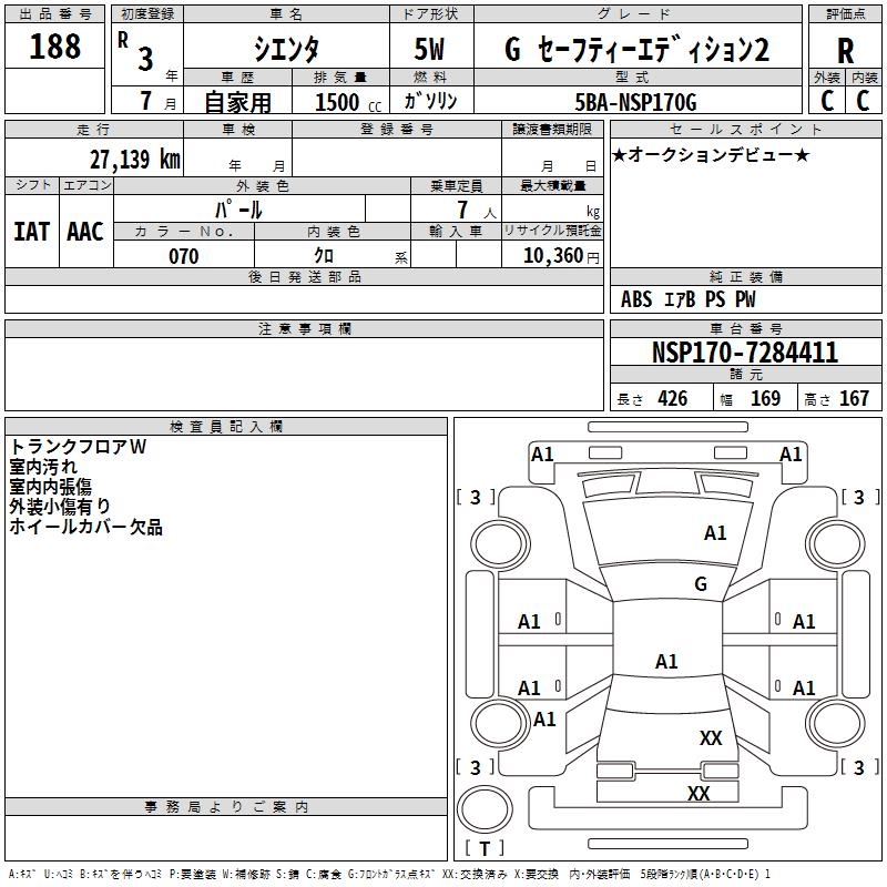 TOYOTA SIENTA G SAFETY - EDITION 2 - лот 188